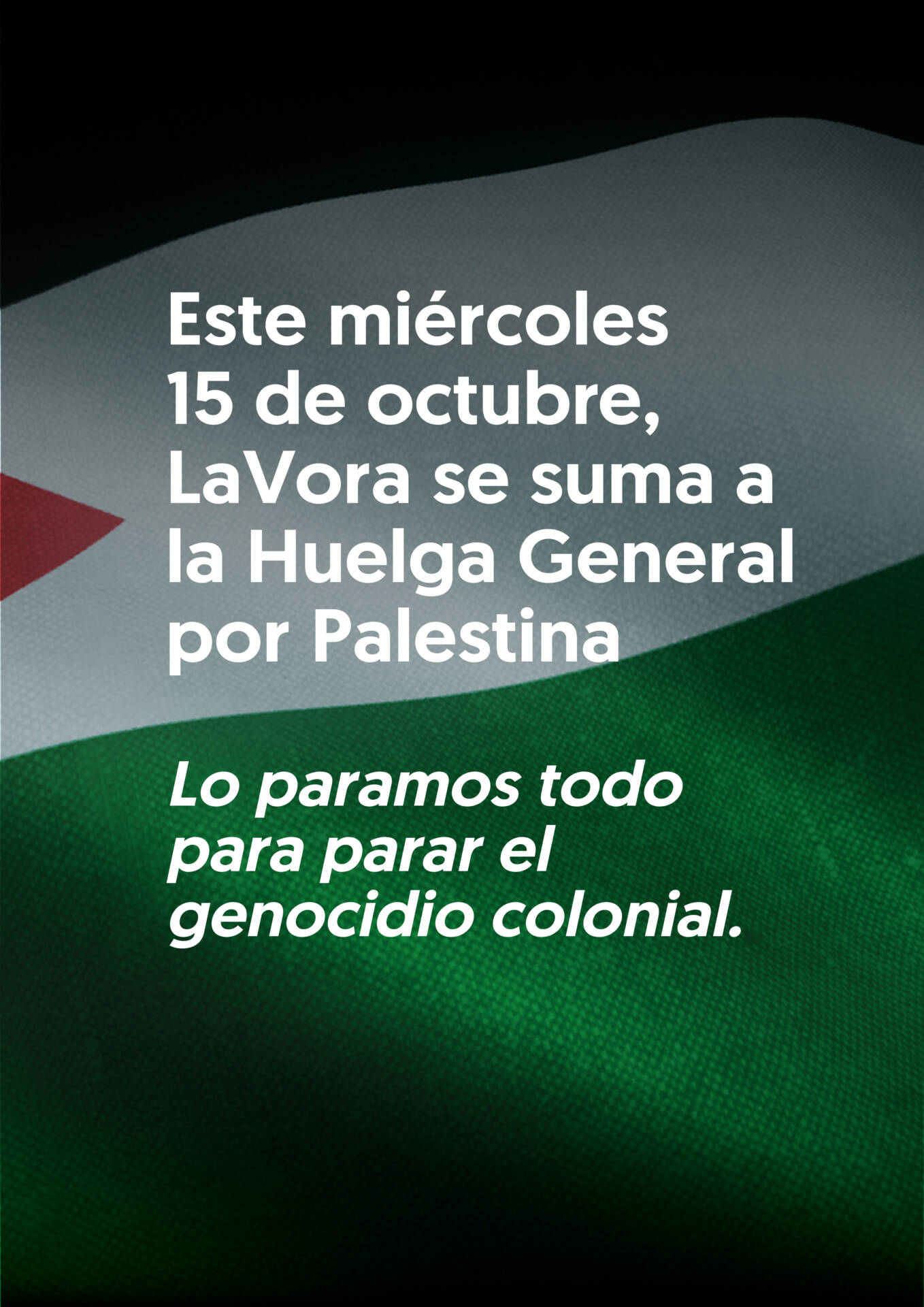 Este 15O, LaVora se suma a la Huelga General por Palestina Lo paramos todo para parar el genocidio colonial.